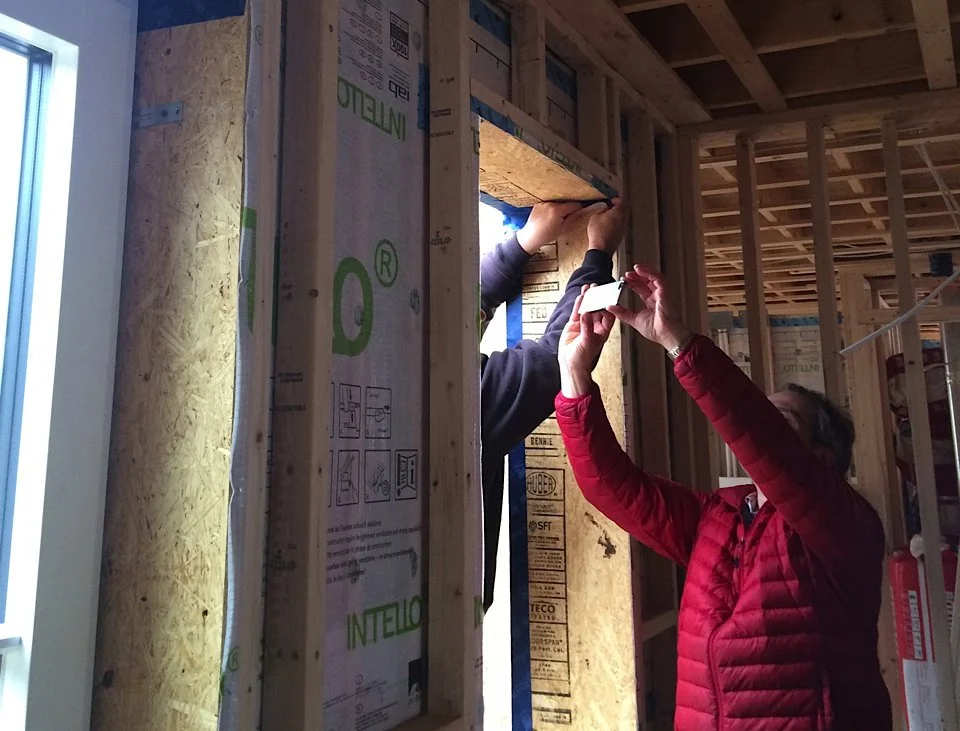 Most of the images in this section show work in process - highlighting areas of the building that are covered up when work is complete. Care taken at this juncture of the process is critical in making sure the passive design strategies are implemented successfully.